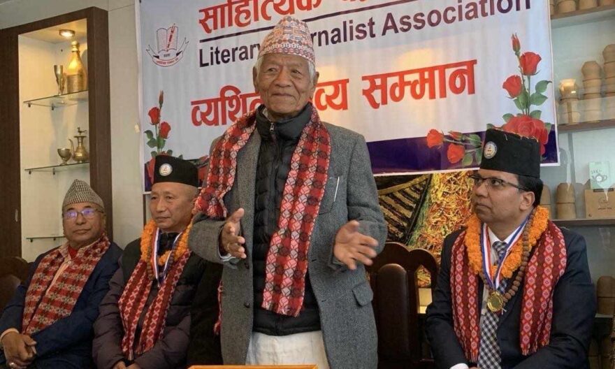 काठमाडौँ । साहित्यिक पत्रकार सङ्घले समकालिन कविहरु श्रवण मुकारुङ, कृसु क्षेत्री र गीता कार्कीलाई सम्मान गरेको छ । नेपाल प्रज्ञा प्रतिष्ठान पूर्वकुलपति वरिष्ठ कवि बैरागी काँइलाले कवी मुकारुङलाई वर्ष २०७५, क्षेत्रीलाई वर्ष ०७७ र कार्कीलाई वर्ष ०७९ को व्यथित काव्य सम्मान प्रदान गरे ।
