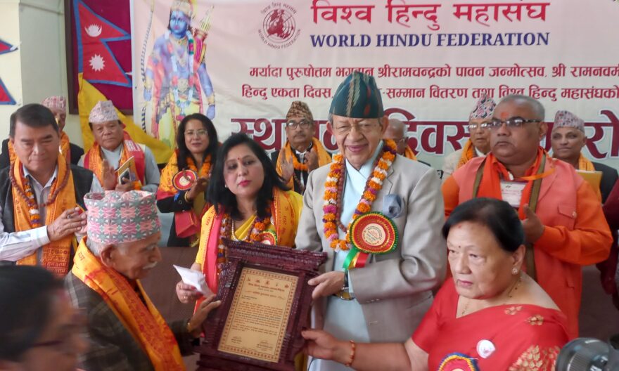 त्यस अवसरमा ५० हजार राशिको ‘भरतकेशर सिंह विश्व हिन्दु अन्तर्राष्ट्रिय’ पुरस्कार महन्थ सुरेन्द्रनाथ अवधूतलाई प्रदान गरियो । कार्यक्रममा नीना भेटुवाल, सोभित उप्रेती र लक्ष्मण सापकोटालाई ‘विश्व हिन्दु सेवा रत्न’ सम्मान प्रदान गरियो । मुलुकको कला, धर्म, संस्कृति, भाषा, संस्कार, वेशभूषा तथा सनातन वैदिक उन्नयनमा विशिष्ट योगदान पु¥याउने प्राडा माधवप्रसाद भट्टराई, वरिष्ठ अधिवक्ता शेरबहादुर केसीलगायत ११ जनालाई पनि समारोहमा सम्मान गरियो ।