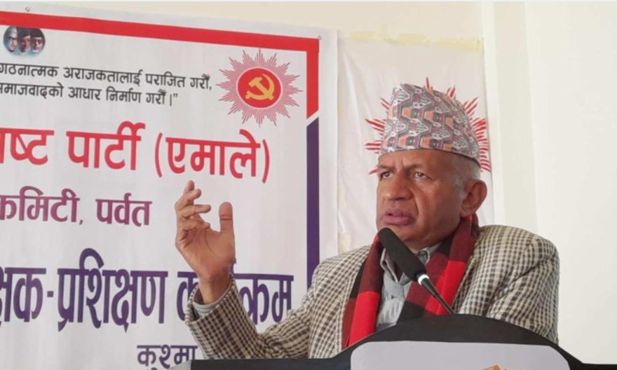 नेकपा (एमाले) पर्वतले आजदेखि सञ्चालन गरेको तीन दिने प्रशिक्षक प्रशिक्षण कार्यक्रमको उद्घाटन गर्दै उपमहासचिव ज्ञवालीले वर्तमान सरकार २०८४ सालसम्मै टिक्ने दाबी गर्नुभयो । “सरकार ढुक्कसँग तीन वर्षसम्म चल्ने भयो भनेपछि सरकार बाहिर रहेका दललाई छटपटाहट भएको हो”, उहाँले भन्नुभयो । मुलुकमा देखिएको सङ्कट समाधान गर्नकै लागि दुई ठूला दल एकठाउँमा आएको उल्लेख गर्दै उहाँले नेपाली कांग्रेस र एमालेबीच विशेष सहमति बनेको बताउनुभयो ।