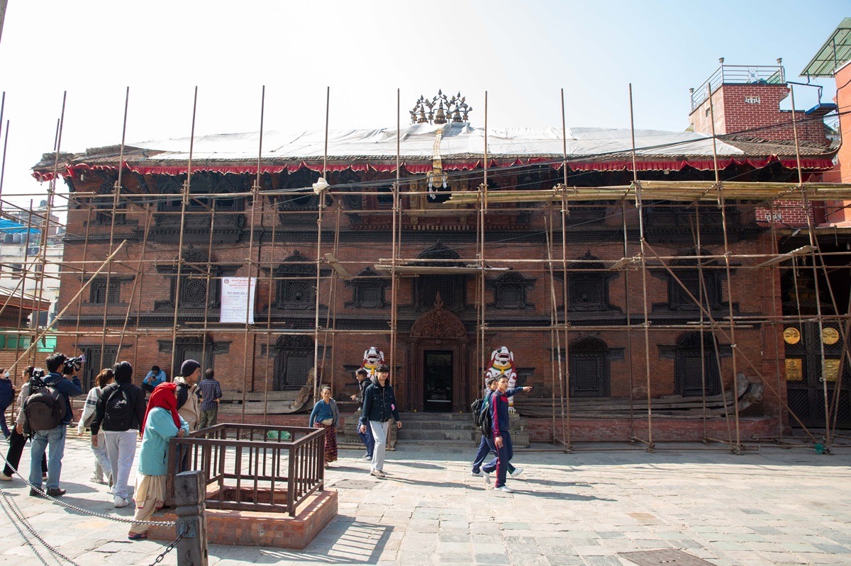 काठमाडौँ । काठमाडौँ महानगरपालिकाका कार्यवाहक प्रमुख सुनिता डंगोलले यस वर्षको बर्खा याम सुरु हुनु अघि कुमारी वहाल (कुमारी घर) को छानो जीर्णाेद्धार गरिसक्न निर्देशन दिनुभएको छ । आज छानो जीर्णोद्धार कार्यको अनुगमन गर्र्दै उहाँले, कुमारी घरसँग सम्बन्धित धार्मिक, सांस्कृतिक तथा सामाजिक पक्षमा असर नहुने गरी समयमा काम सक्न निर्माण पक्षलाई निर्देशन दिनुभएको हो । बोलपत्रमार्फत छानिएको निर्माण पक्ष अजय निर्माण सेवासँग फागुन ११ गते सम्झौता गरेर फागुन २५ गतेदेखि जीर्णोद्धारको काम सुरु भएको हो । सम्झौता अवधि २०८३ माघ ३० गतेसम्म छ । आर्थिक वर्ष २०८२/८३ को दररेट राखेर जीर्णोद्धारका लागि प्रयोग हुने झिँगटी, काठ लगायतका छानासँग सम्वन्धित अवयवहरुको जीर्णोद्धार गर्न १ करोड २५ लाख ४७ हजार ८६४ रुपियाँ लागत अनुमान गरिएको थियो । खुला प्रतिस्पर्धाबाट छानिएको निर्माण पक्षले ७१ लाख २४ हजार ६८९ रुपियाँमा निर्माण कवोल गरेको छ ।